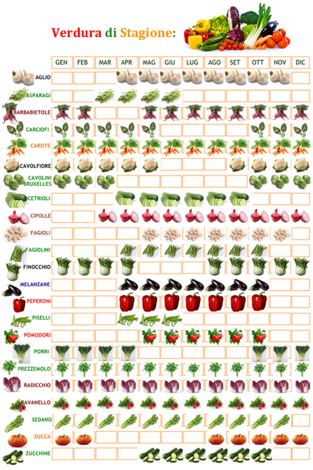 I CALENDARI DELLA FRUTTA DI STAGIONE e DELLA VERDURA DI STAGIONE